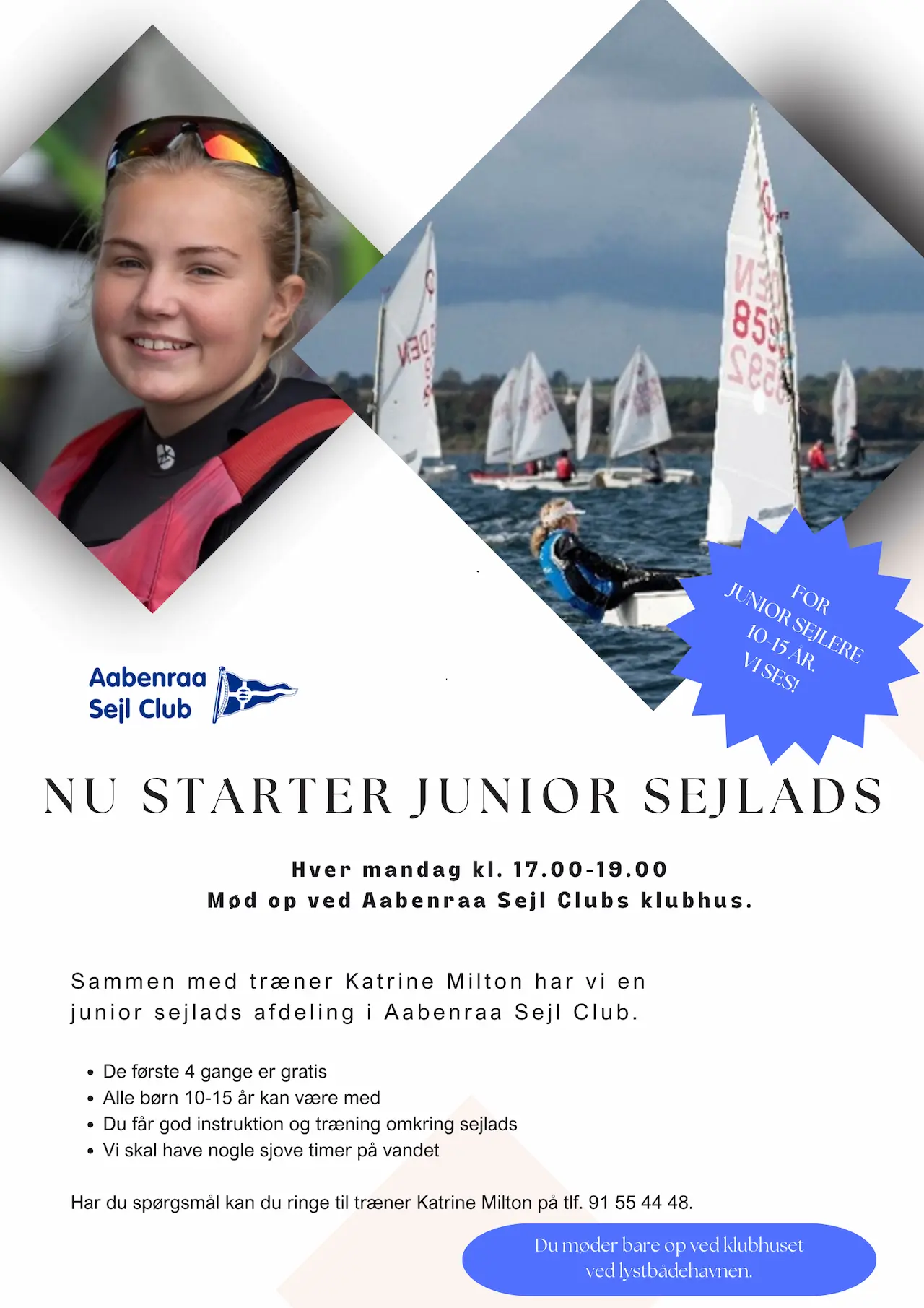 • Sammen med træner Katrine Milton har vi en junior sejlads afdeling i Aabenraa Sejl Club