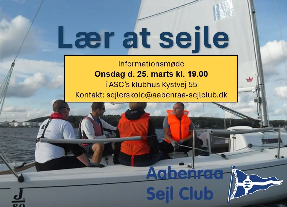 Hvis du kunne tænke dig at lære at sejle, så indbyder Aabenraa Sejl Club dig til et informationsmøde om klubbens sejleskole.